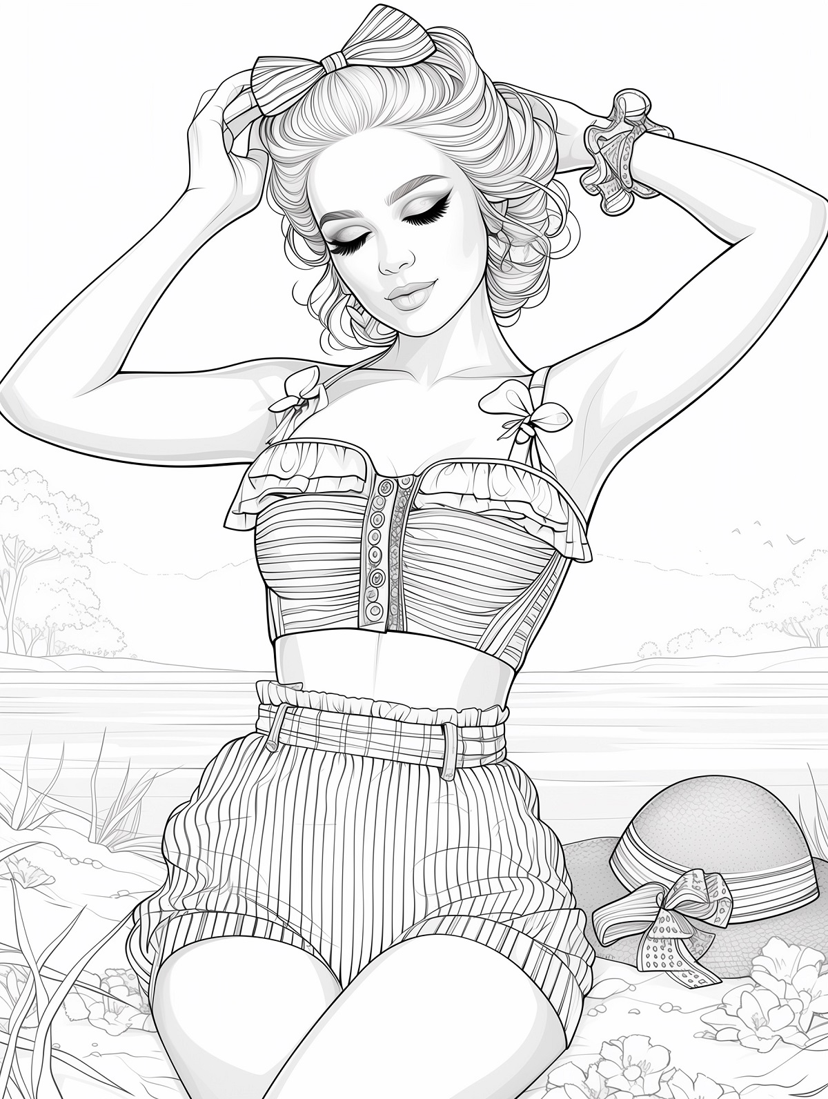 Discover the ultimate tool for creating beautiful, high-quality summer coloring images effortlessly with our exclusive Summer Pin-Up Coloring Page Prompt Set.